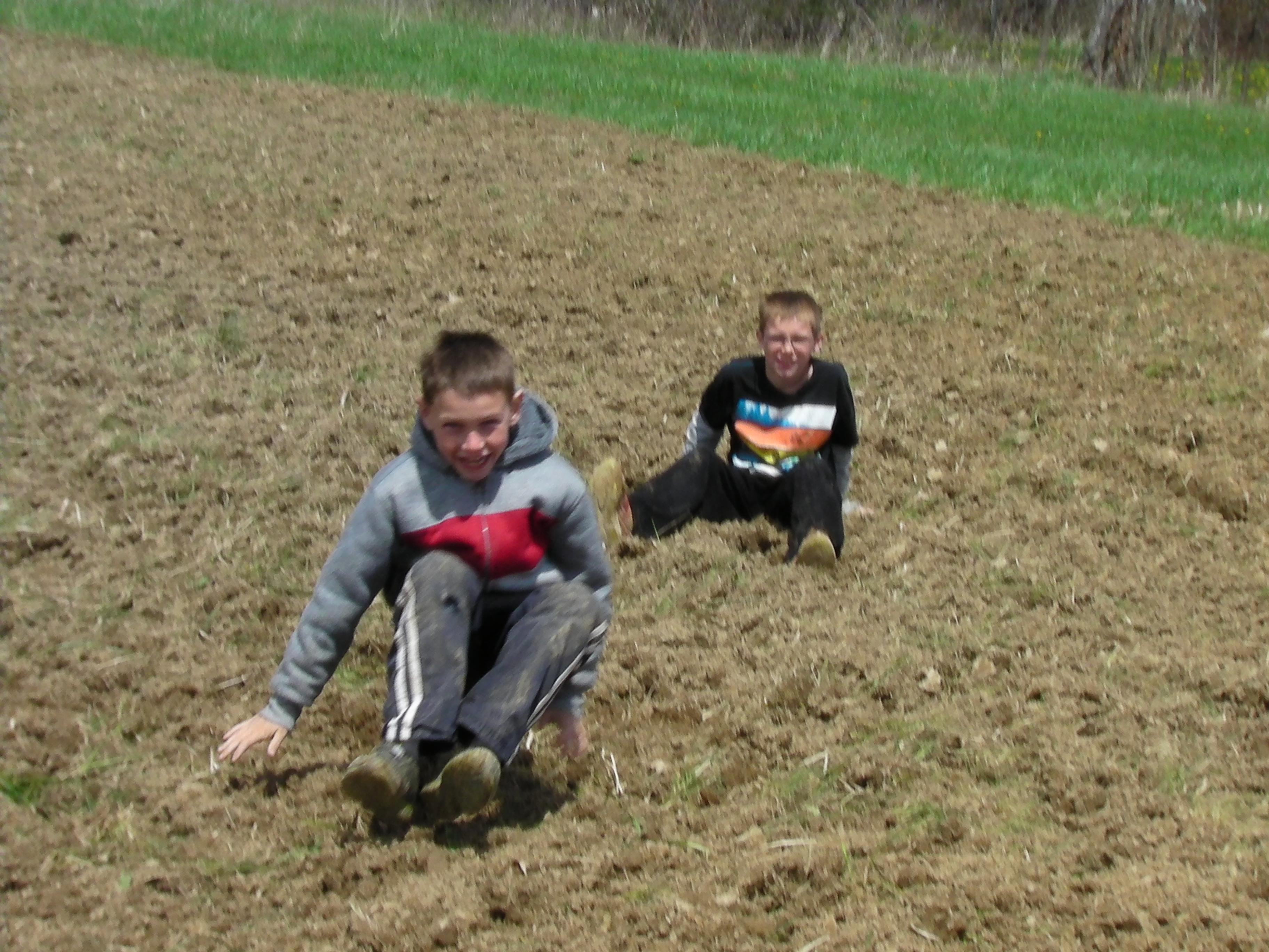 Our boys had a hard time not rolling around in the freshly worked soil: